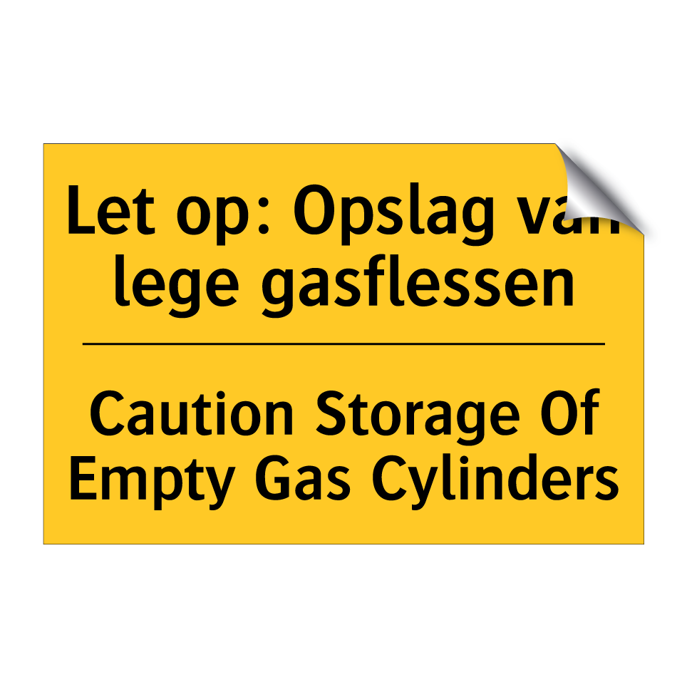 Waarschuwingsbord met de tekst Let op: Opslag van lege gasflessen / Caution Storage Of Empty Gas Cylinders