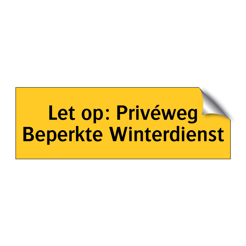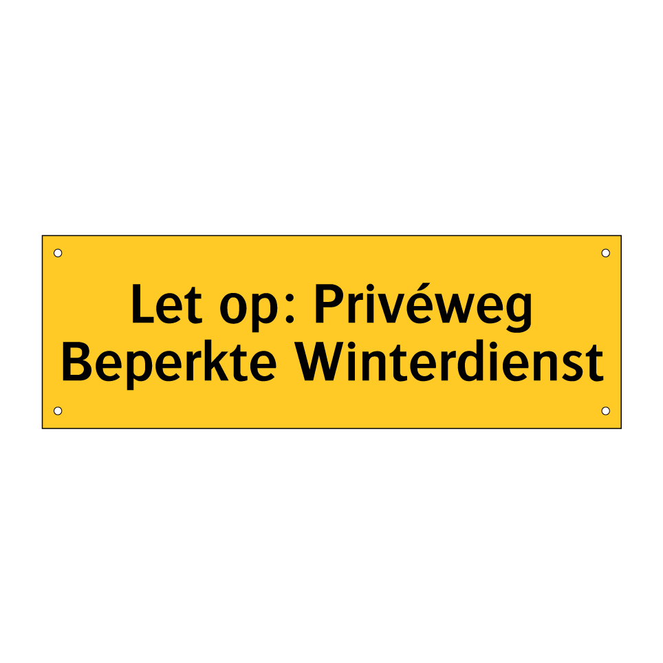 Waarschuwingsbord met de tekst Let op: Privéweg Beperkte Winterdienst