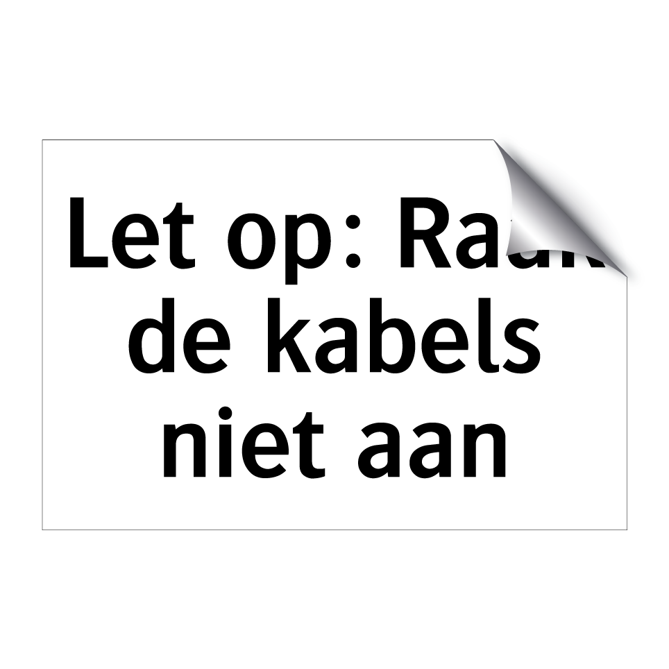 Verbodsbord met de tekst Let op: Raak de kabels niet aan