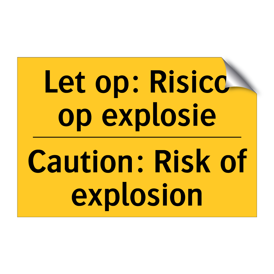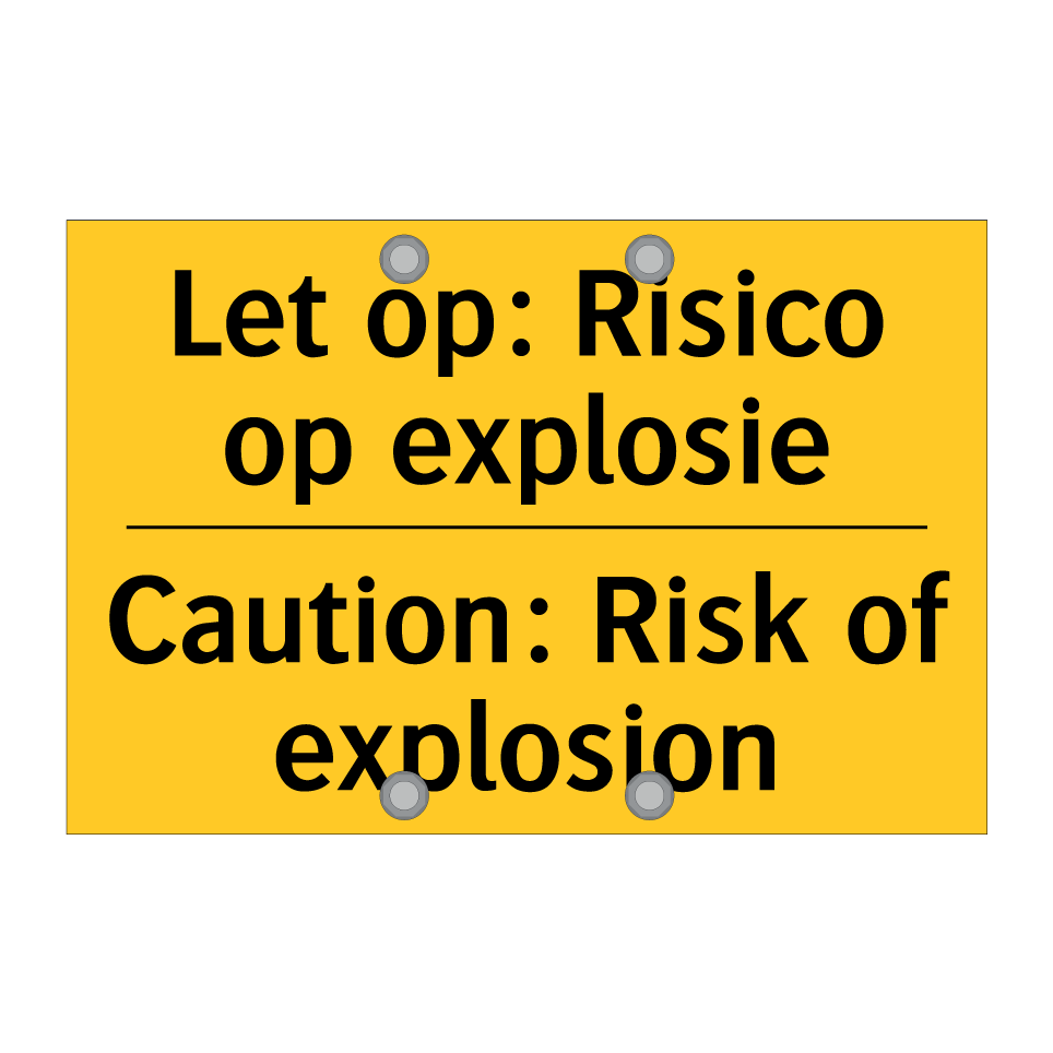 Waarschuwingsbord met de tekst Let op: Risico op explosie / Caution: Risk of explosion