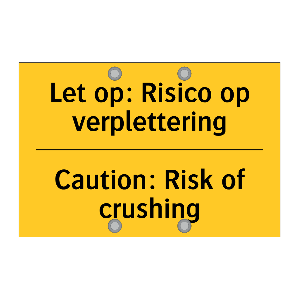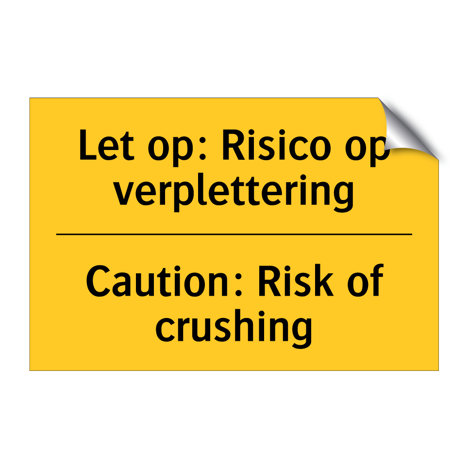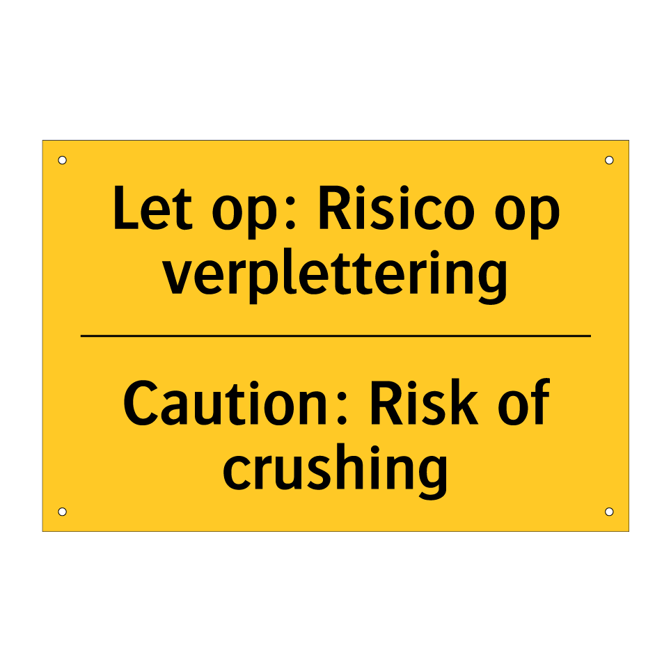Waarschuwingsbord met de tekst Let op: Risico op verplettering / Caution: Risk of crushing