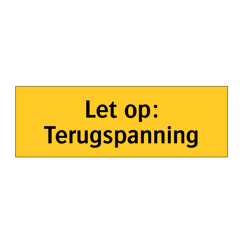 Waarschuwingsbord met de tekst Let op: Terugspanning