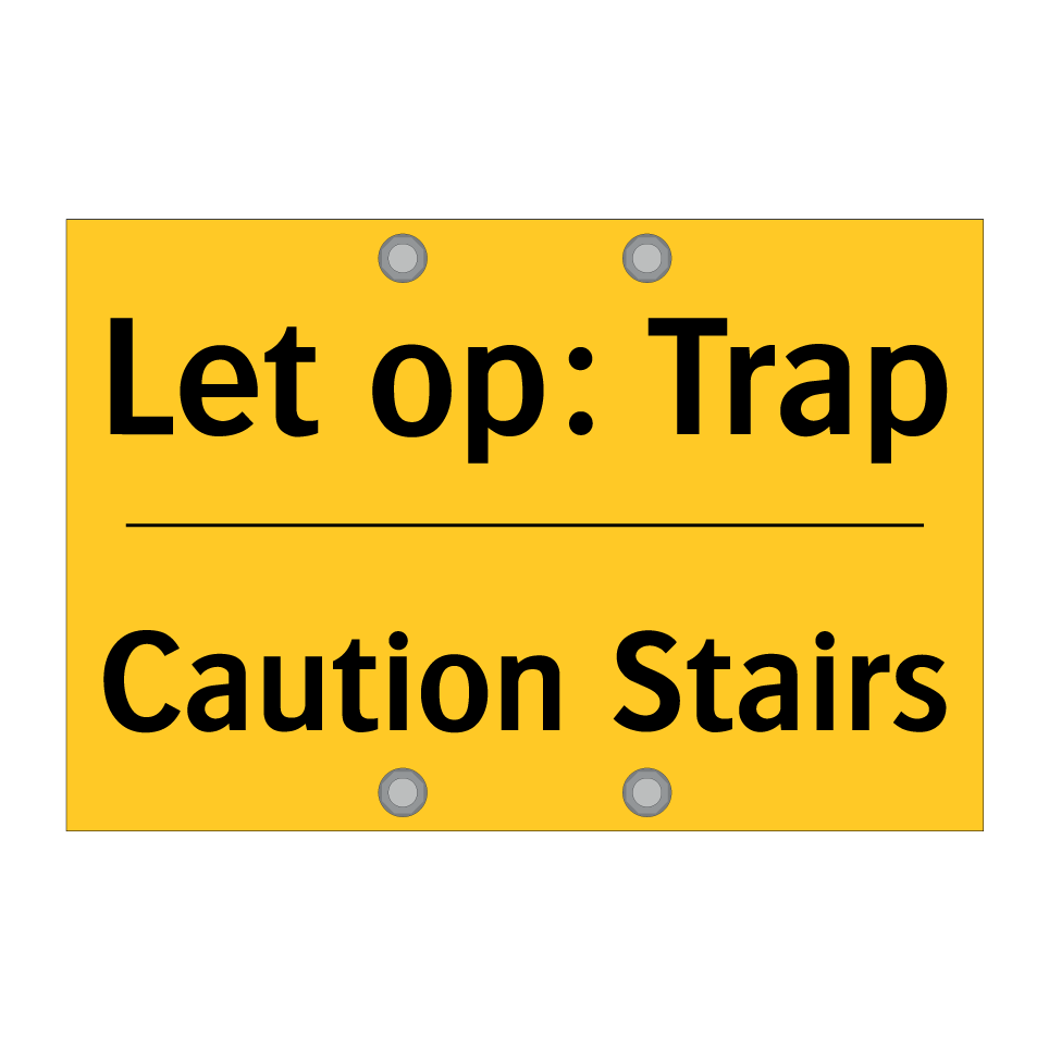 Waarschuwingsbord met de tekst Let op: Trap / Caution Stairs