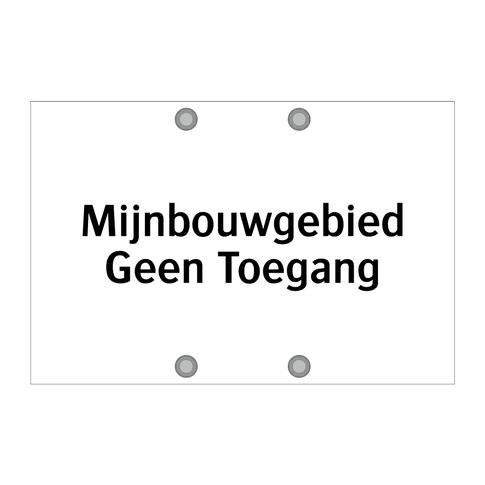 Verbodsbord met de tekst Mijnbouwgebied Geen Toegang
