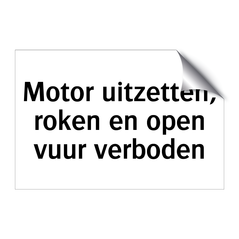 Verbodsbord met de tekst Motor uitzetten, roken en open vuur verboden