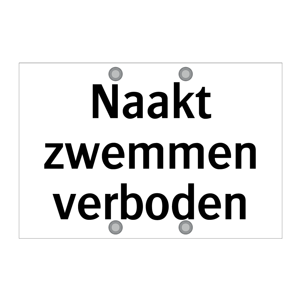 Verbodsbord met de tekst Naakt zwemmen verboden