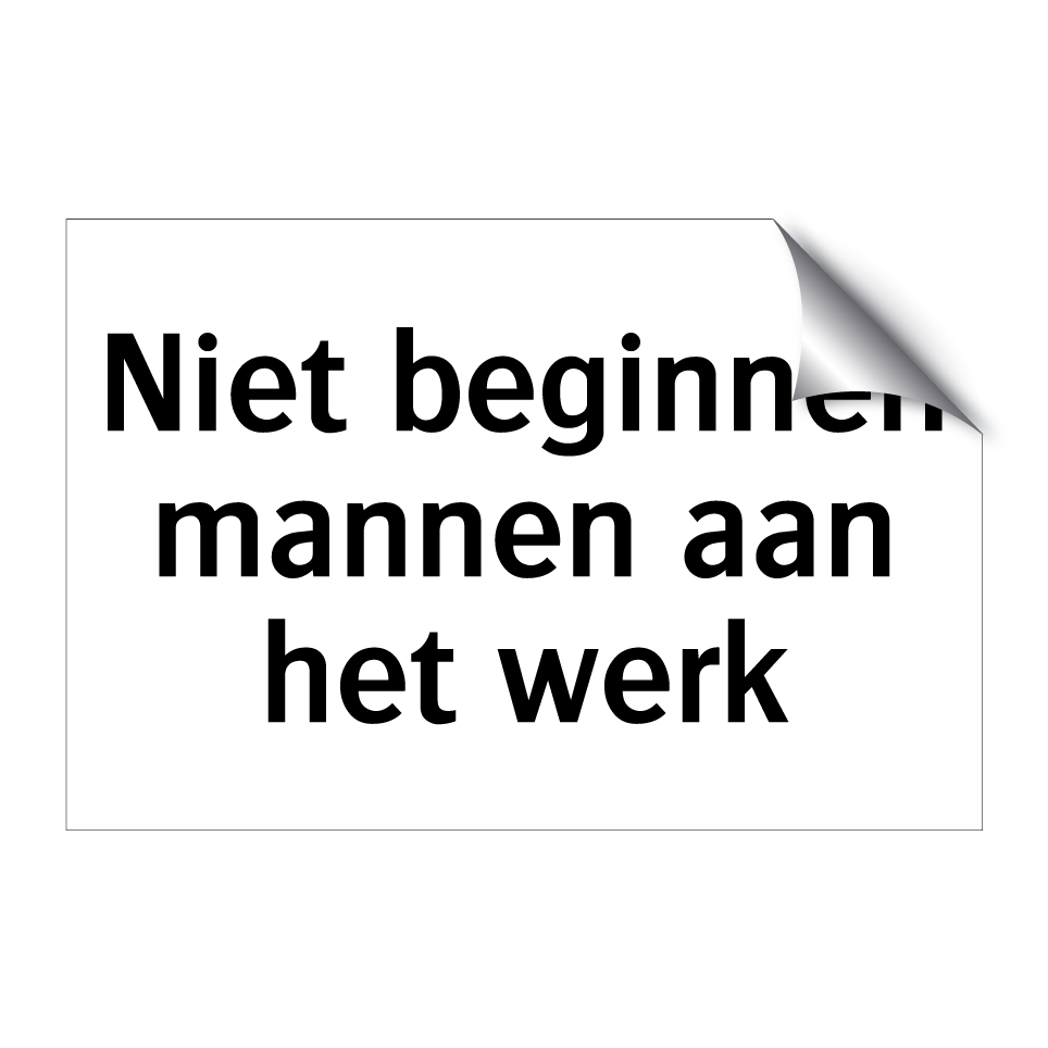 Verbodsbord met de tekst Niet beginnen mannen aan het werk
