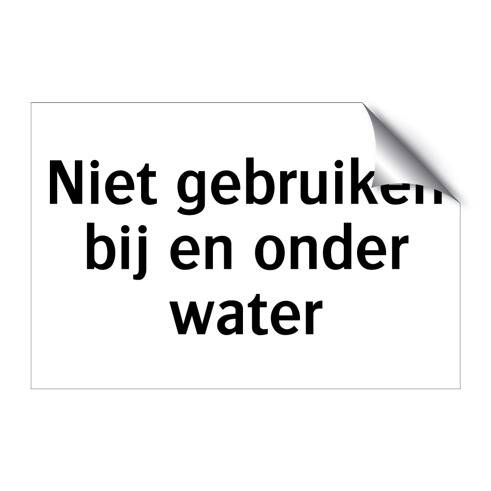 Verbodsbord met de tekst Niet gebruiken bij en onder water