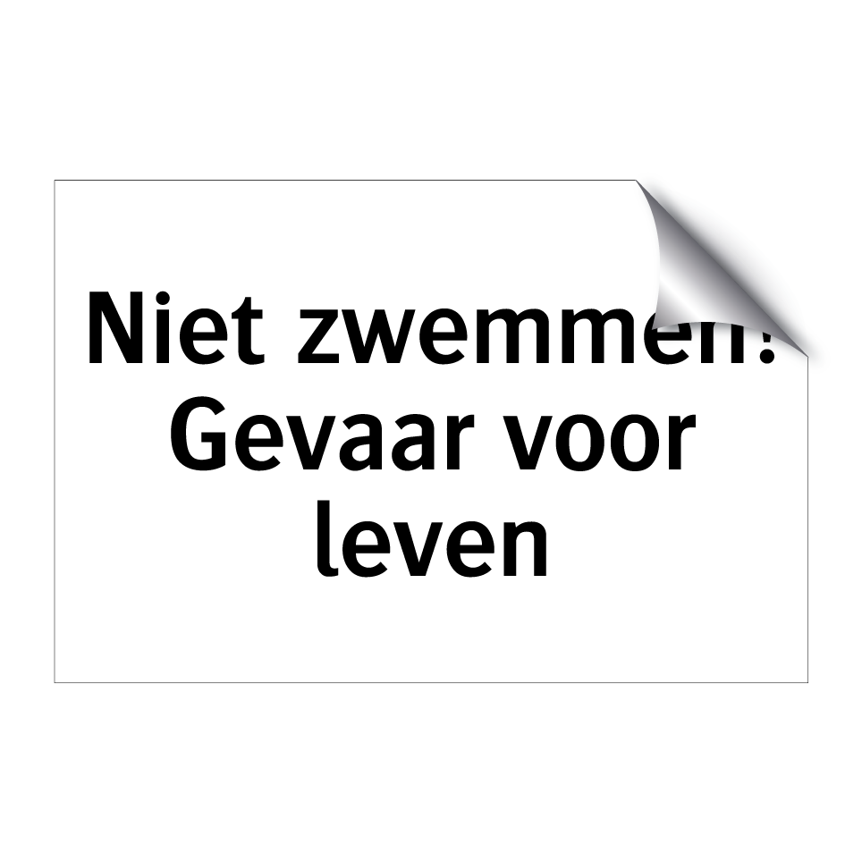 Verbodsbord met de tekst Niet zwemmen! Gevaar voor leven