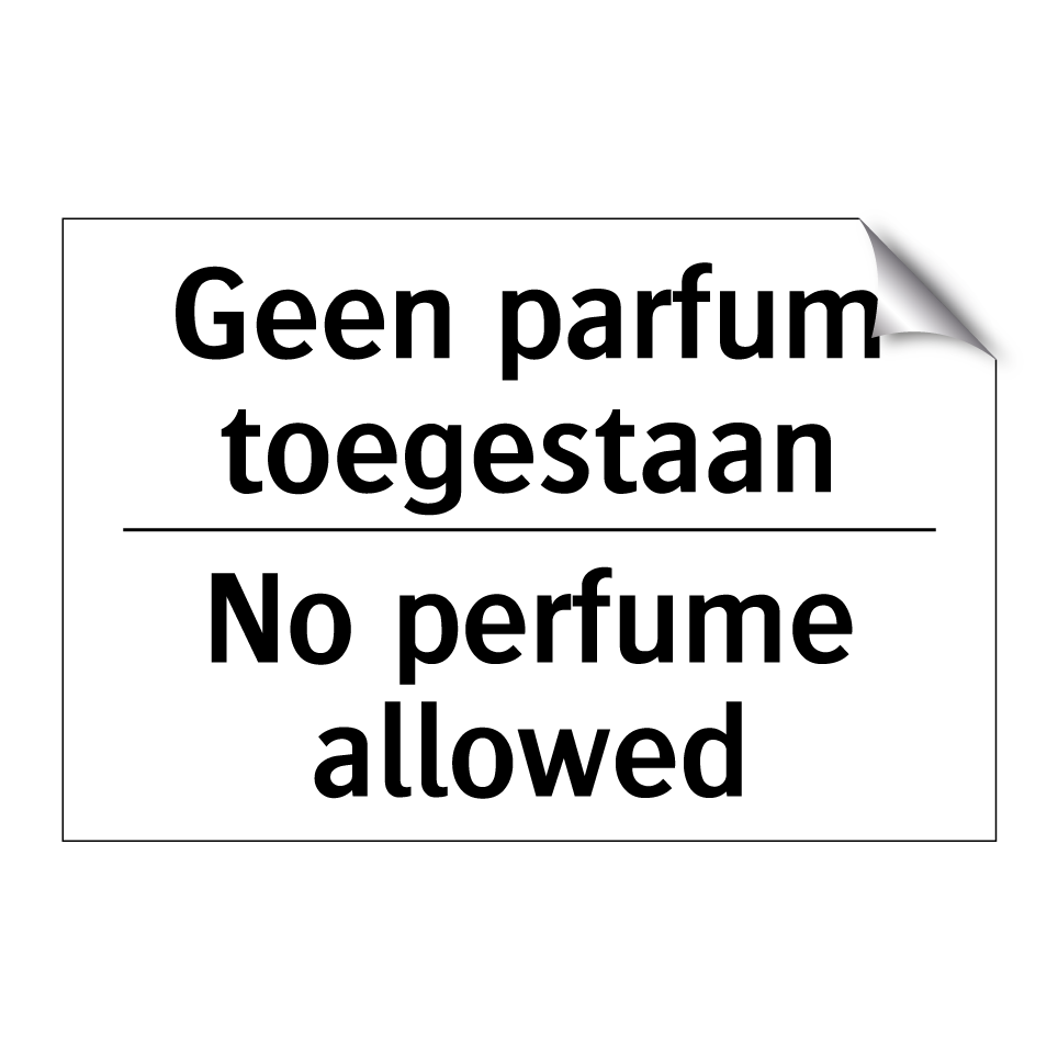 Verbodsbord met de tekst Geen parfum toegestaan en in het Engels: No perfume allowed