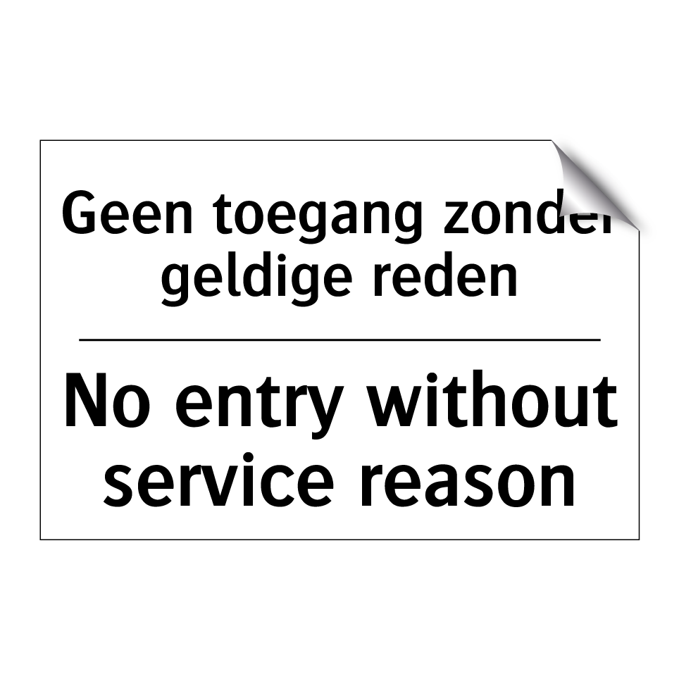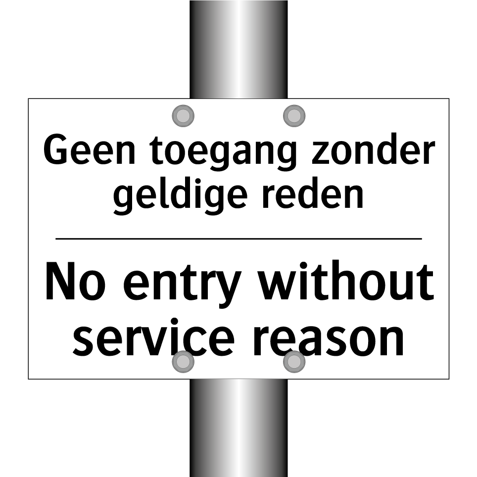 Verbodsbord met de tekst Geen toegang zonder geldige reden en in het Engels: No entry without service reason