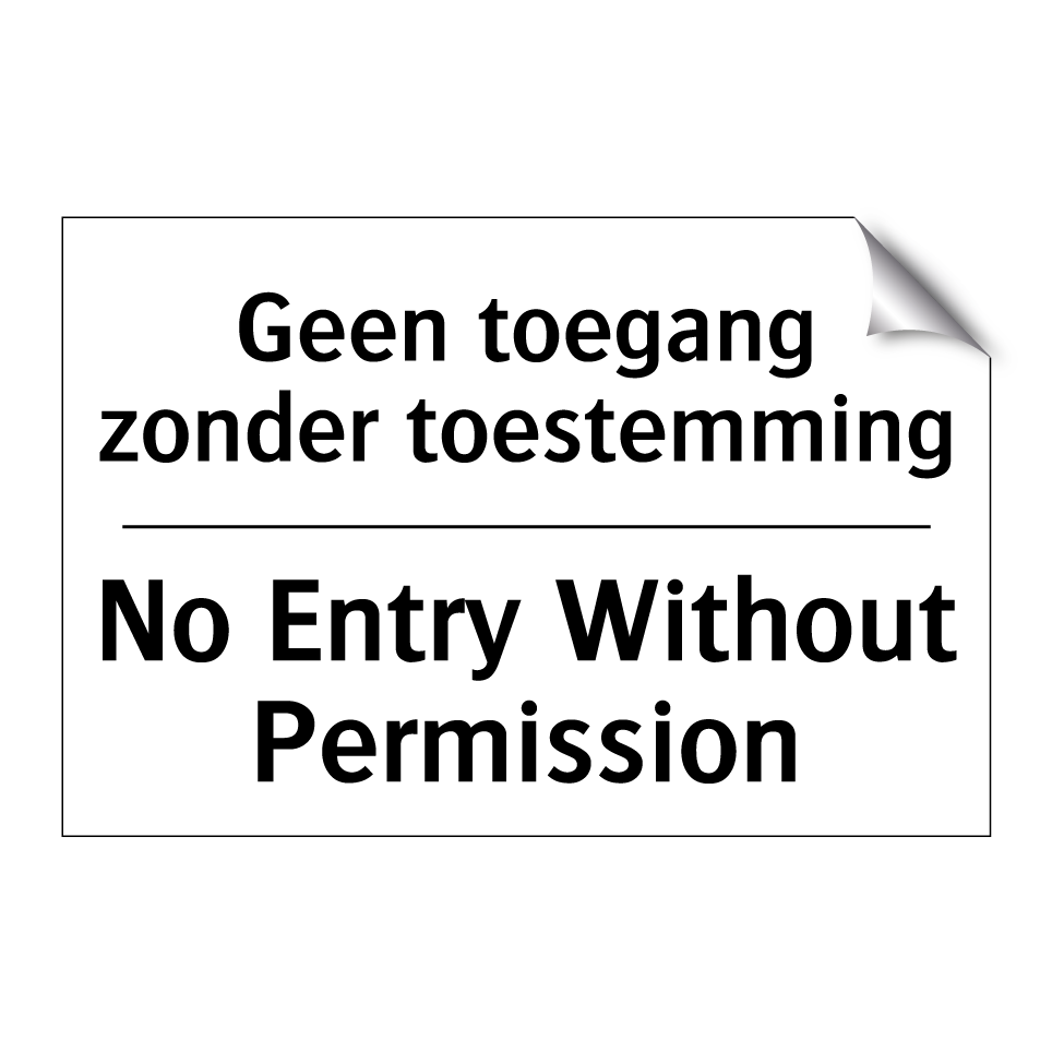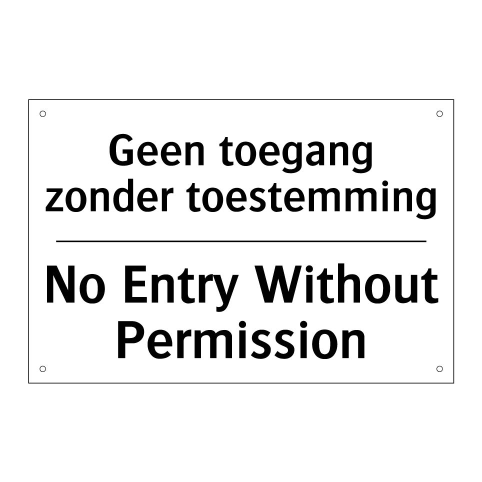 Verbodsbord met de tekst Geen toegang zonder toestemming en in het Engels: No Entry Without Permission