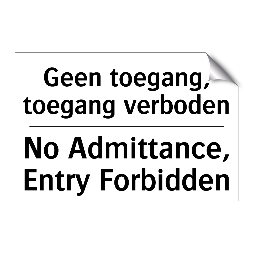 Verbodsbord met de tekst Geen toegang, toegang verboden en in het Engels: No Admittance, Entry Forbidden