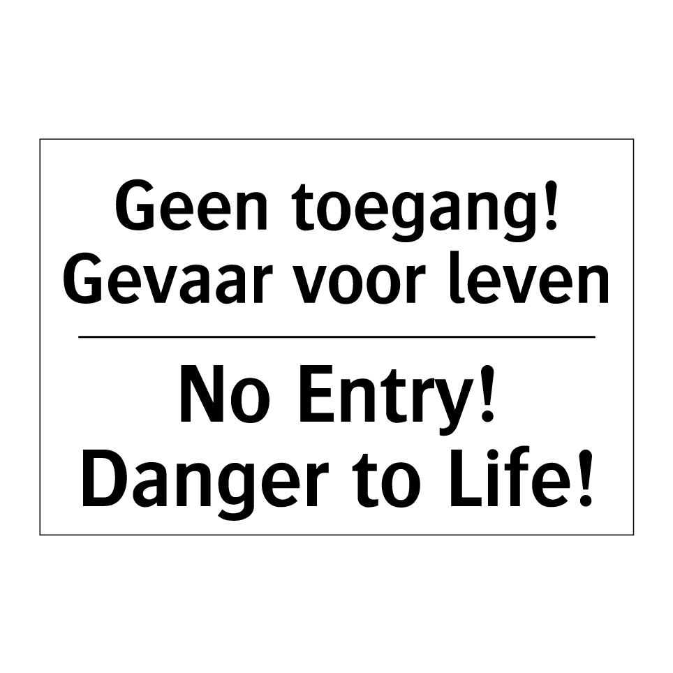 Verbodsbord met de tekst Geen toegang! Gevaar voor leven en in het Engels: No Entry! Danger to Life!