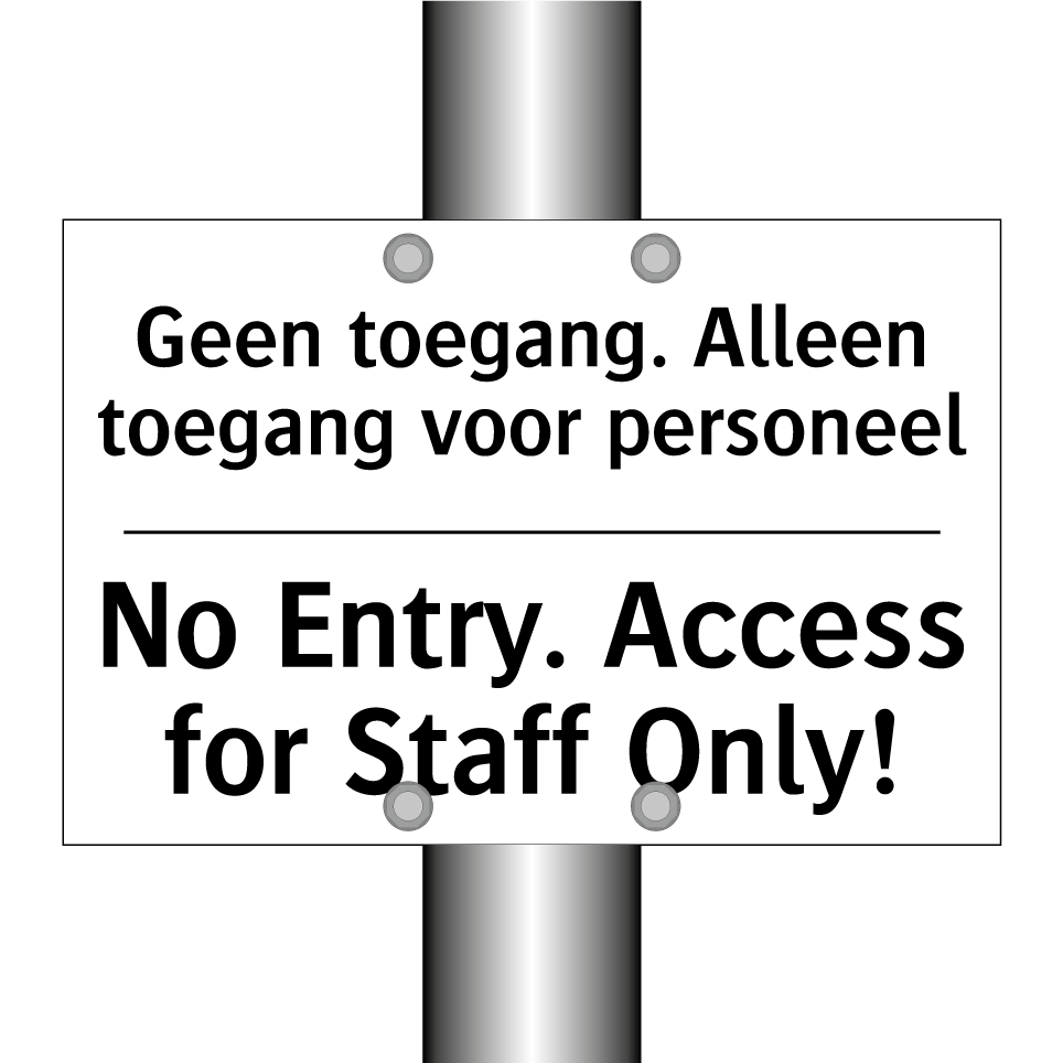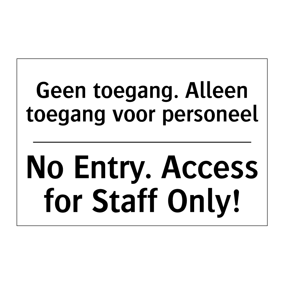 Verbodsbord met de tekst Geen toegang. Alleen toegang voor personeel en in het Engels: No Entry. Access for Staff Only!