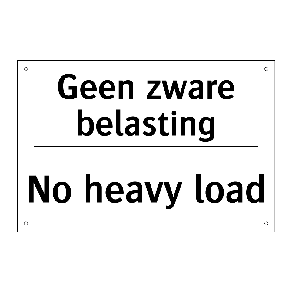 Verbodsbord met de tekst Geen zware belasting en in het Engels: No heavy load