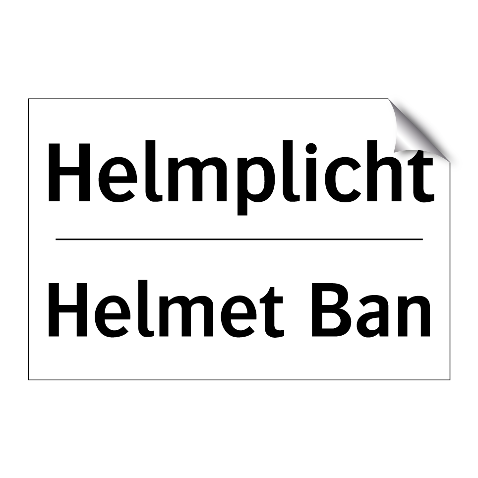 Verbodsbord met de tekst Helmplicht en in het Engels: Helmet Ban