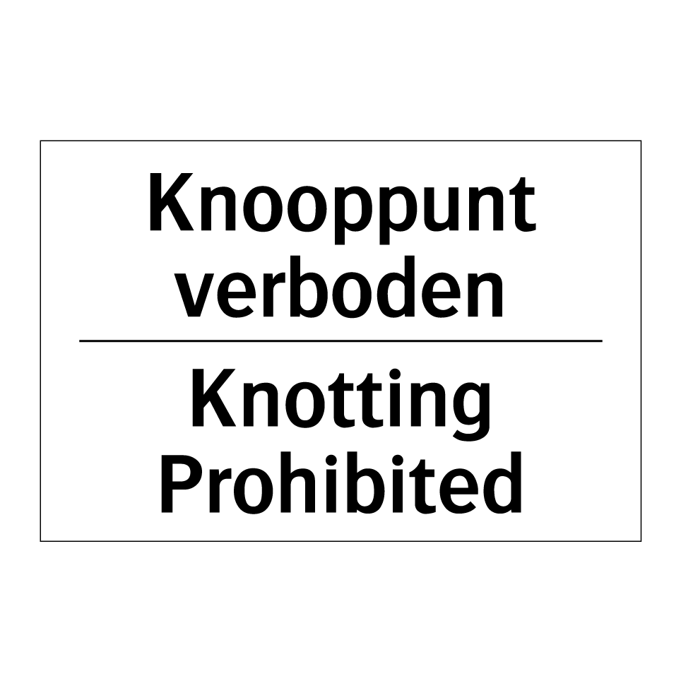 Verbodsbord met de tekst Knooppunt verboden en in het Engels: Knotting Prohibited