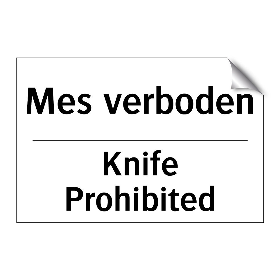 Verbodsbord met de tekst Mes verboden en in het Engels: Knife Prohibited