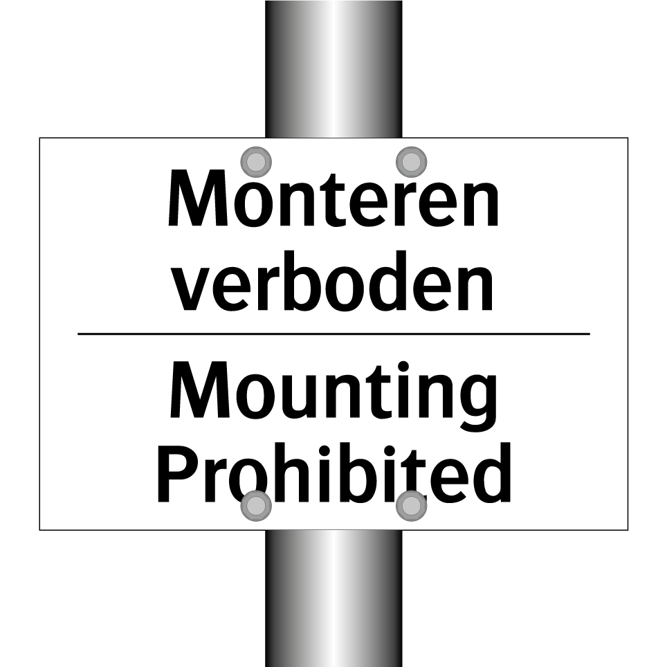 Verbodsbord met de tekst Monteren verboden en in het Engels: Mounting Prohibited