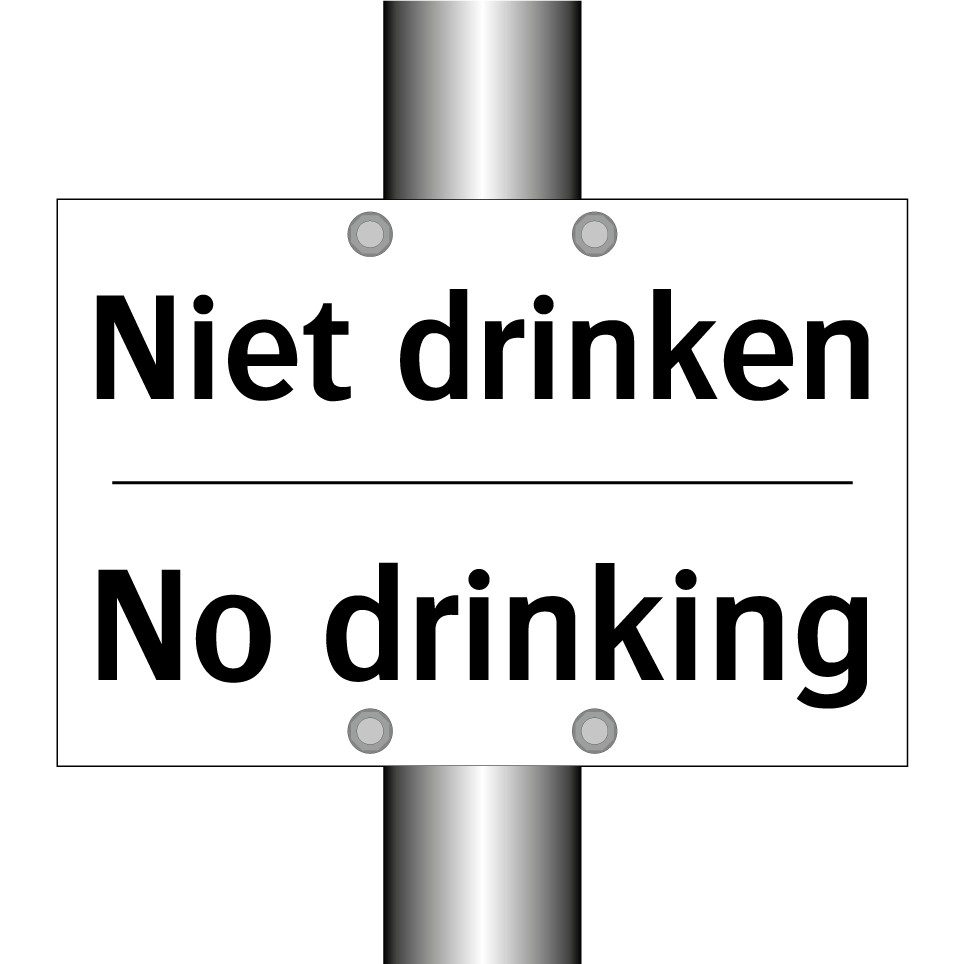 Verbodsbord met de tekst Niet drinken en in het Engels: No drinking