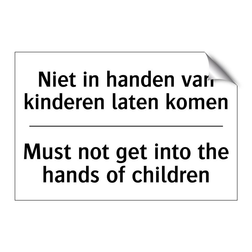 Verbodsbord met de tekst Niet in handen van kinderen laten komen en in het Engels: Must not get into the hands of children