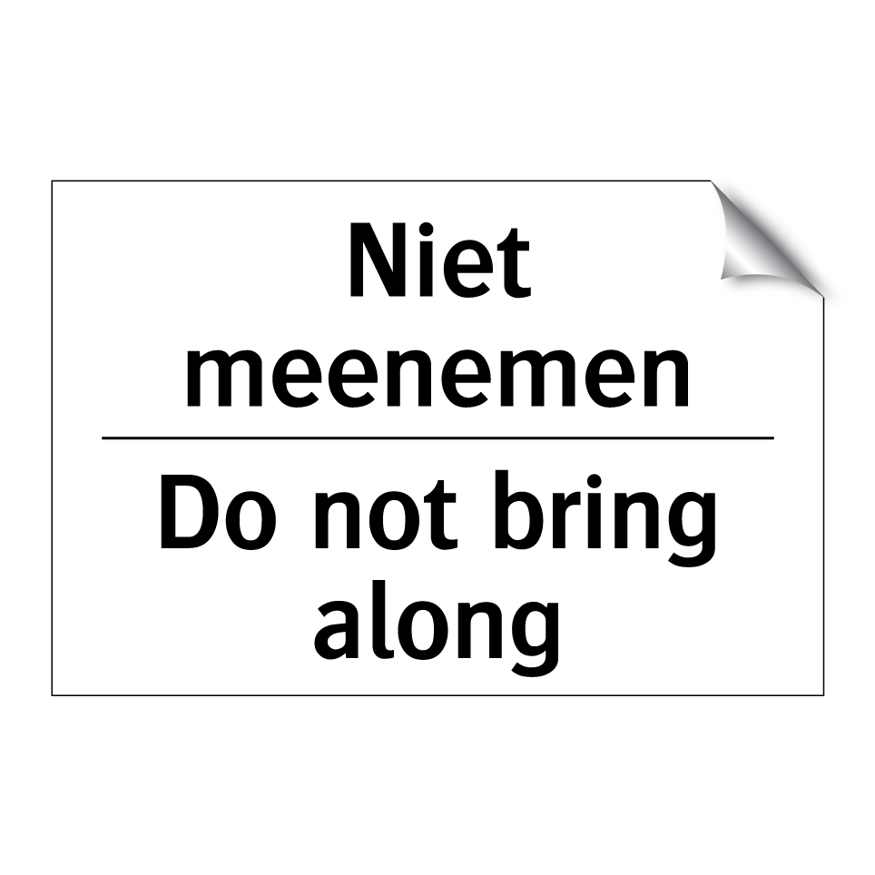 Verbodsbord met de tekst Niet meenemen en in het Engels: Do not bring along