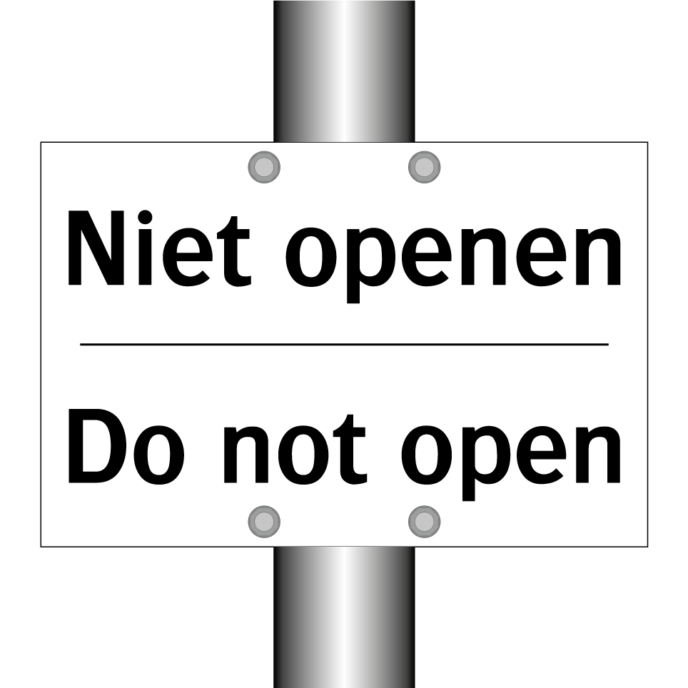 Verbodsbord met de tekst Niet openen en in het Engels: Do not open