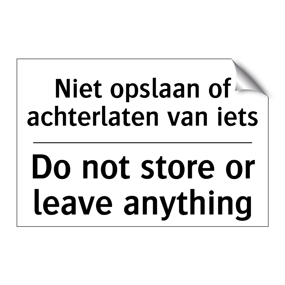 Verbodsbord met de tekst Niet opslaan of achterlaten van iets en in het Engels: Do not store or leave anything