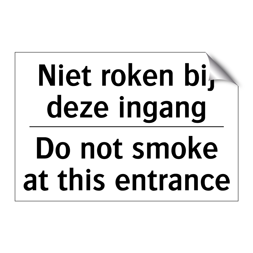 Verbodsbord met de tekst Niet roken bij deze ingang en in het Engels: Do not smoke at this entrance