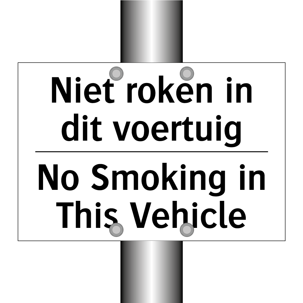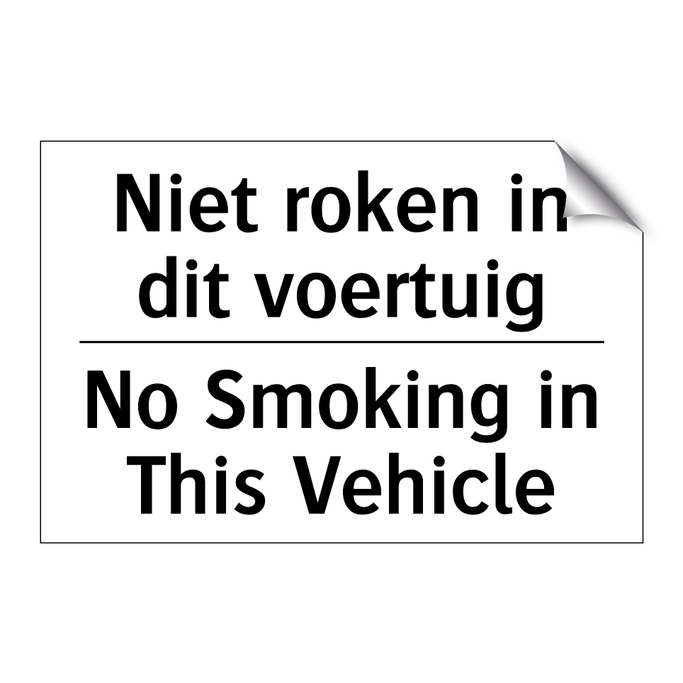 Verbodsbord met de tekst Niet roken in dit voertuig en in het Engels: No Smoking in This Vehicle