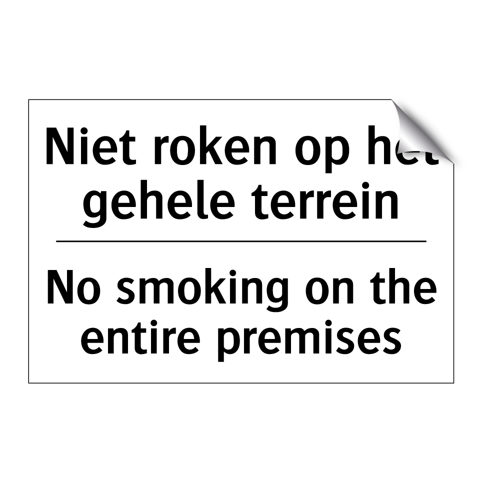 Verbodsbord met de tekst Niet roken op het gehele terrein en in het Engels: No smoking on the entire premises