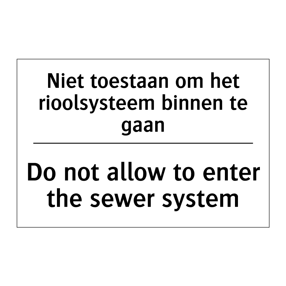 Verbodsbord met de tekst Niet toestaan om het rioolsysteem binnen te gaan en in het Engels: Do not allow to enter the sewer system