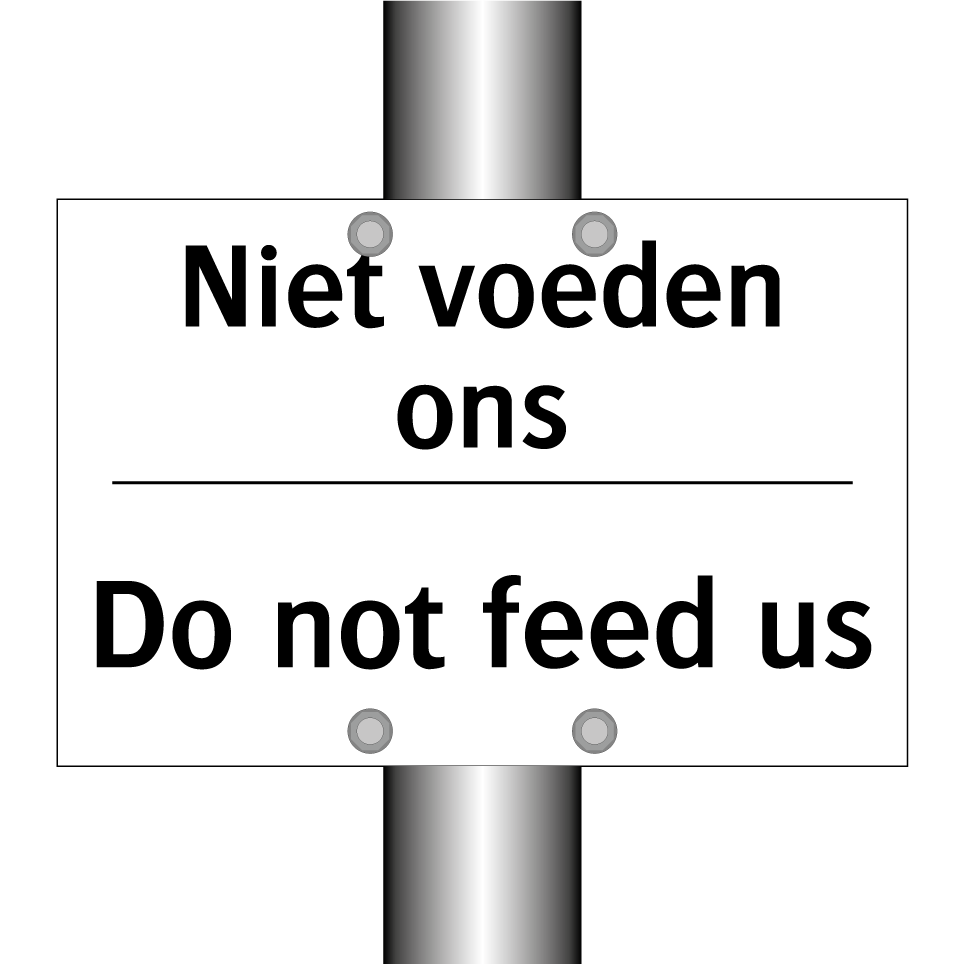 Verbodsbord met de tekst Niet voeden ons en in het Engels: Do not feed us
