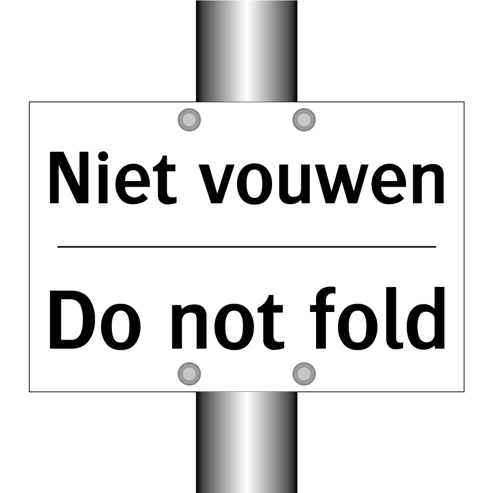 Verbodsbord met de tekst Niet vouwen en in het Engels: Do not fold