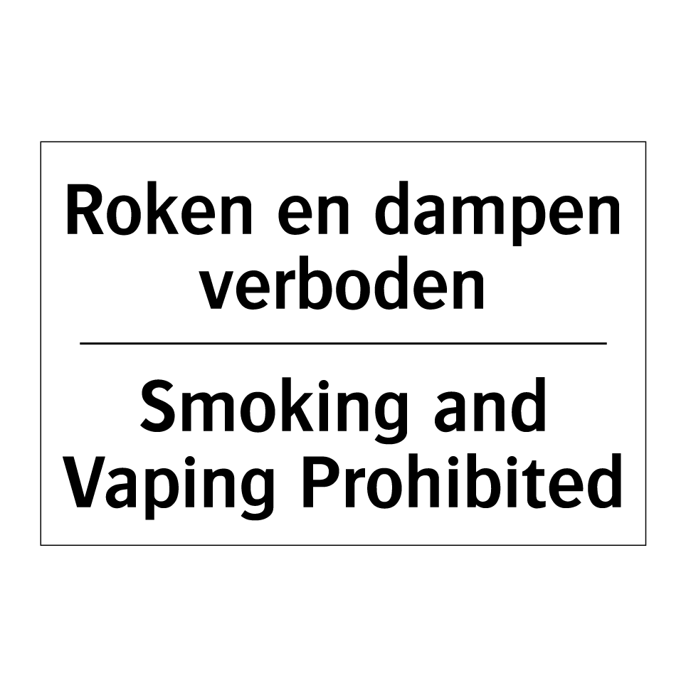 Verbodsbord met de tekst Roken en dampen verboden en in het Engels: Smoking and Vaping Prohibited
