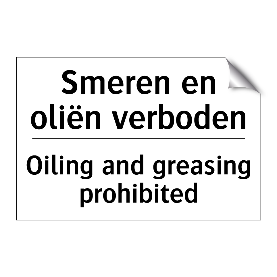 Verbodsbord met de tekst Smeren en oliën verboden en in het Engels: Oiling and greasing prohibited