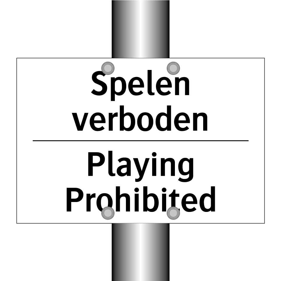 Verbodsbord met de tekst Spelen verboden en in het Engels: Playing Prohibited