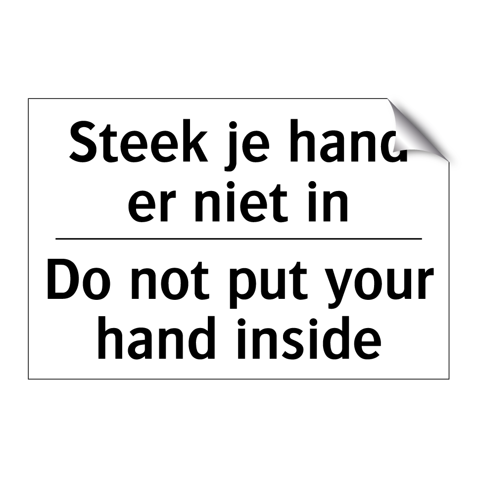 Verbodsbord met de tekst Steek je hand er niet in en in het Engels: Do not put your hand inside