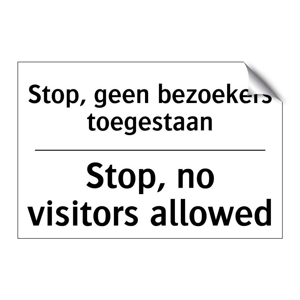 Verbodsbord met de tekst Stop, geen bezoekers toegestaan en in het Engels: Stop, no visitors allowed