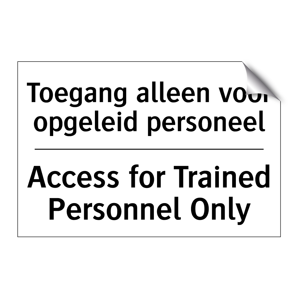 Verbodsbord met de tekst Toegang alleen voor opgeleid personeel en in het Engels: Access for Trained Personnel Only