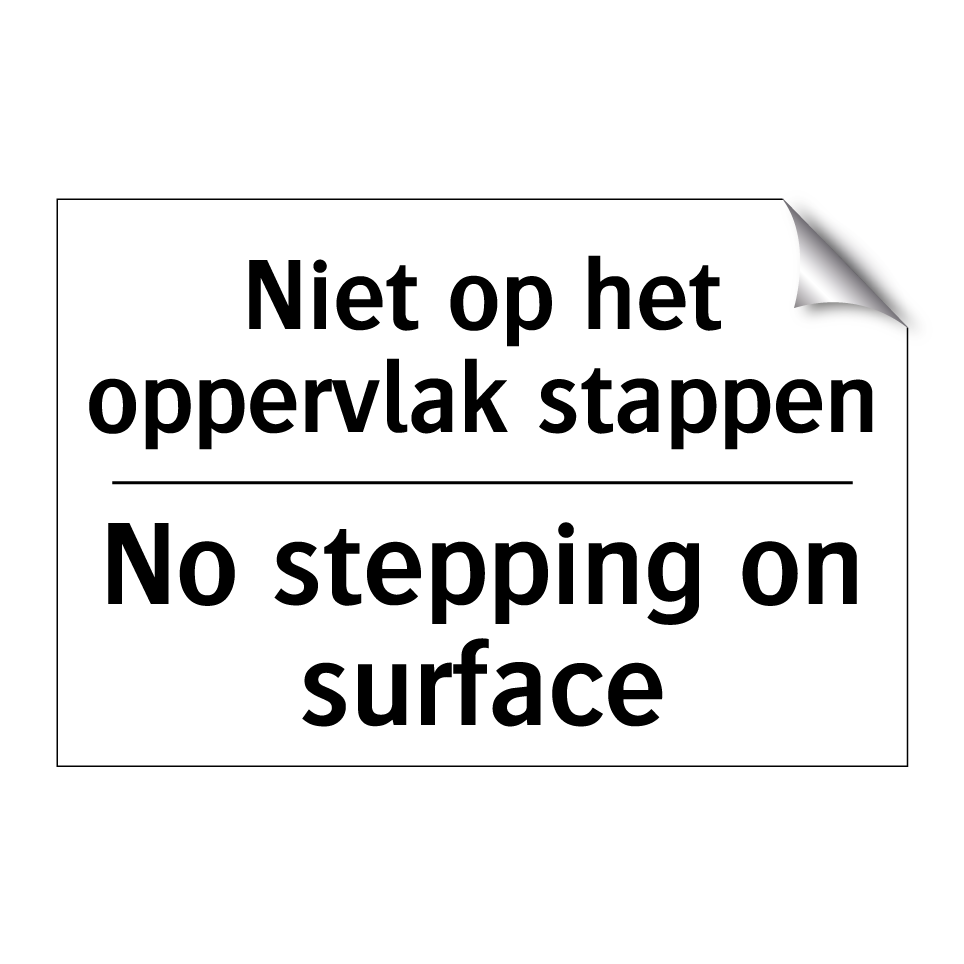 Verbodsbord met de tekst Niet op het oppervlak stappen en in het Engels: No stepping on surface