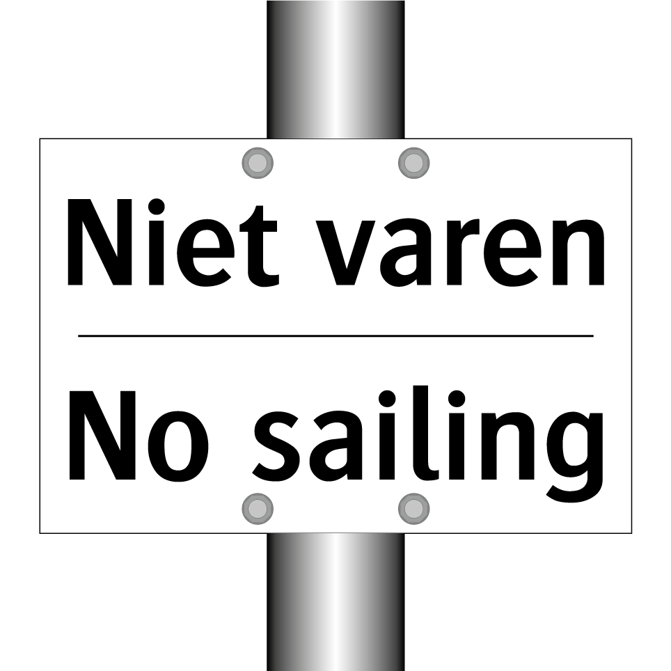 Verbodsbord met de tekst Niet varen en in het Engels: No sailing