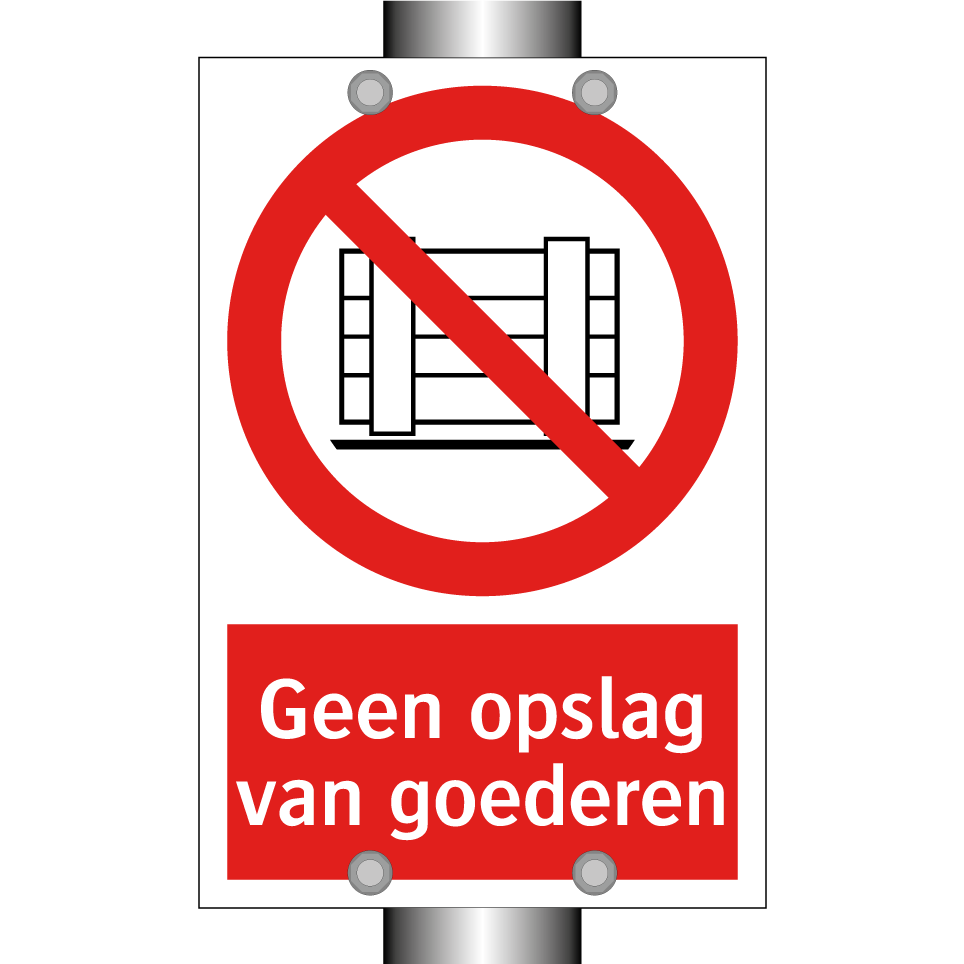 Verbodsbord met de tekst Geen opslag van goederen