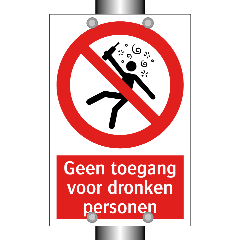 Verbodsbord met de tekst Geen toegang voor dronken personen