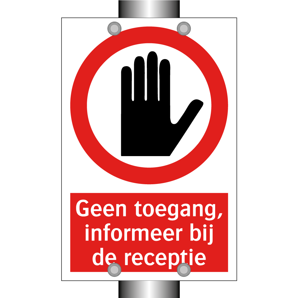 Verbodsbord met de tekst Geen toegang, informeer bij de receptie