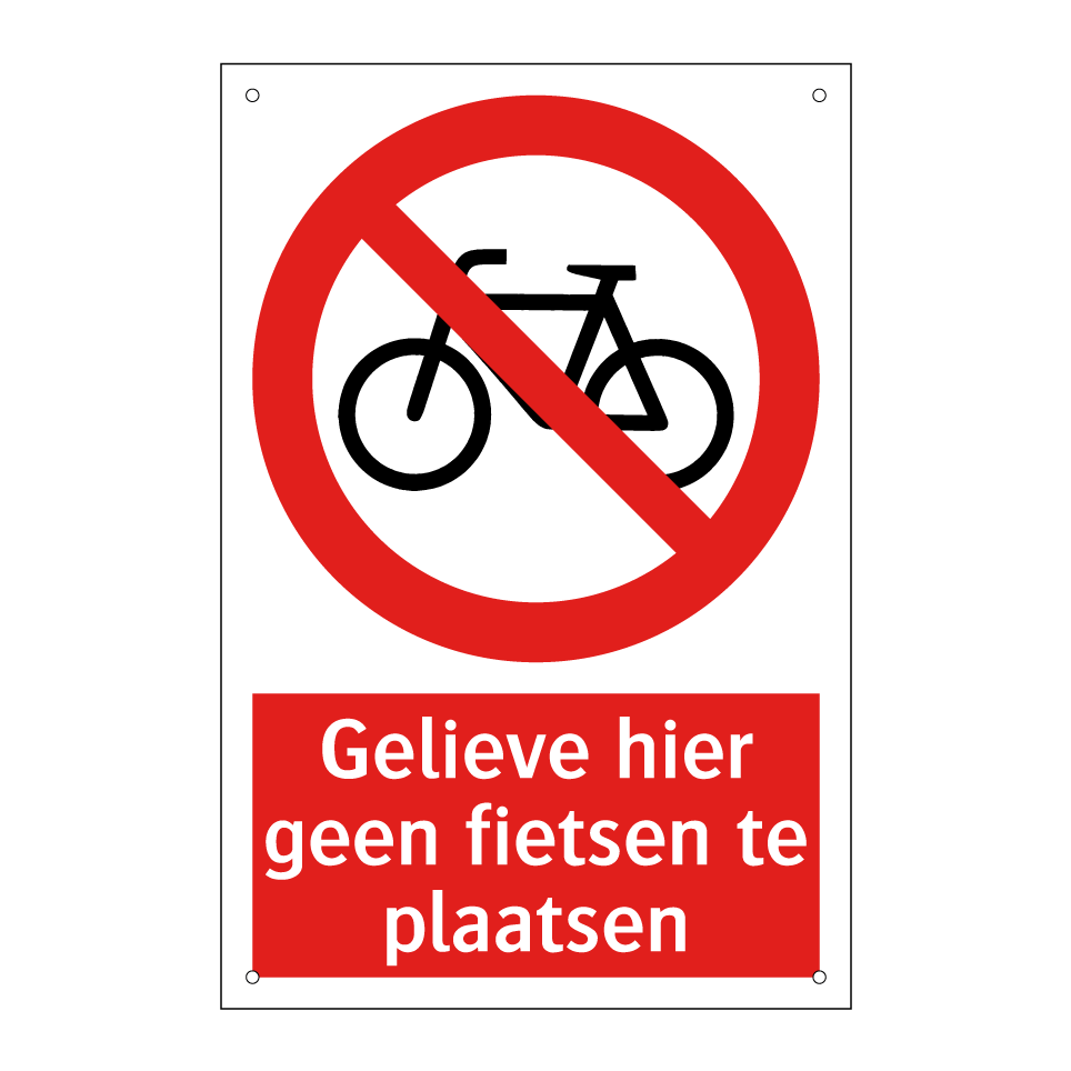 Verbodsbord met de tekst Gelieve hier geen fietsen te plaatsen