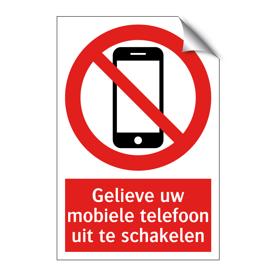 Verbodsbord met de tekst Gelieve uw mobiele telefoon uit te schakelen