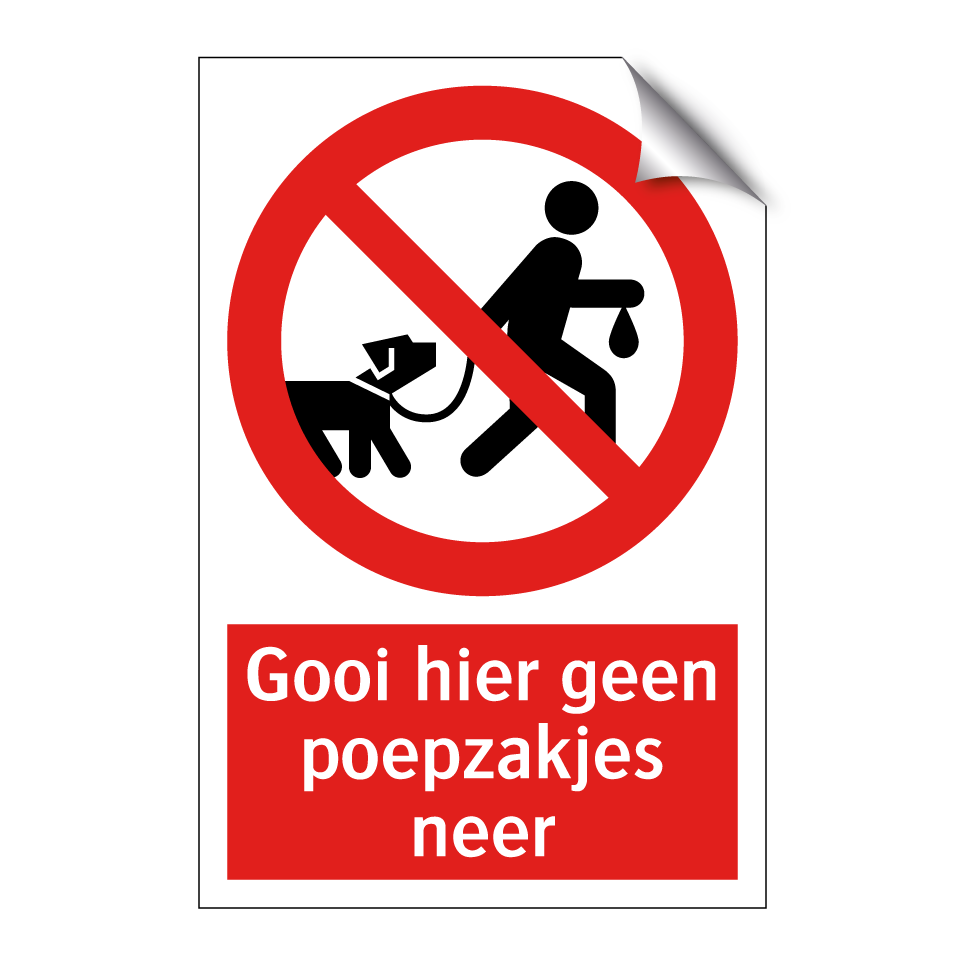 Verbodsbord met de tekst Gooi hier geen poepzakjes neer
