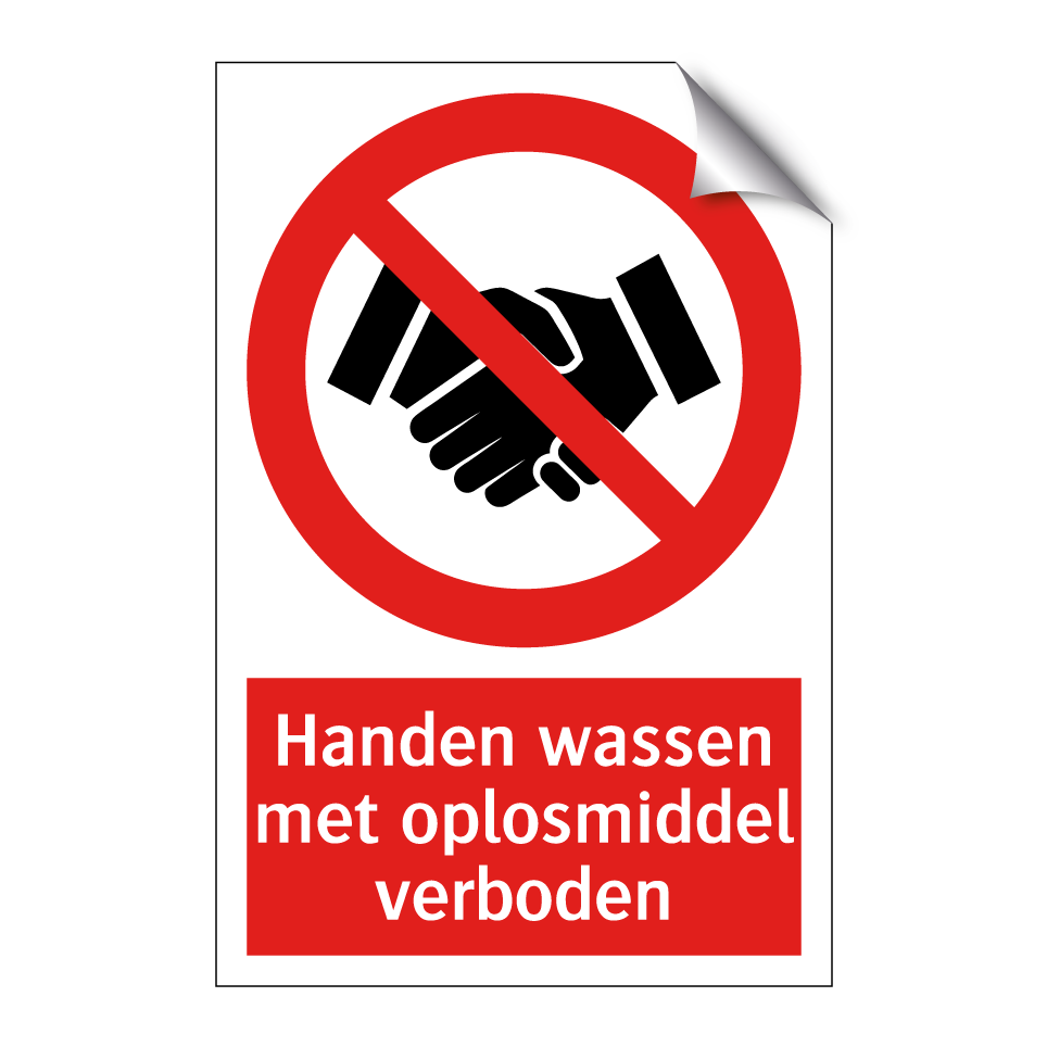 Verbodsbord met de tekst Handen wassen met oplosmiddel verboden